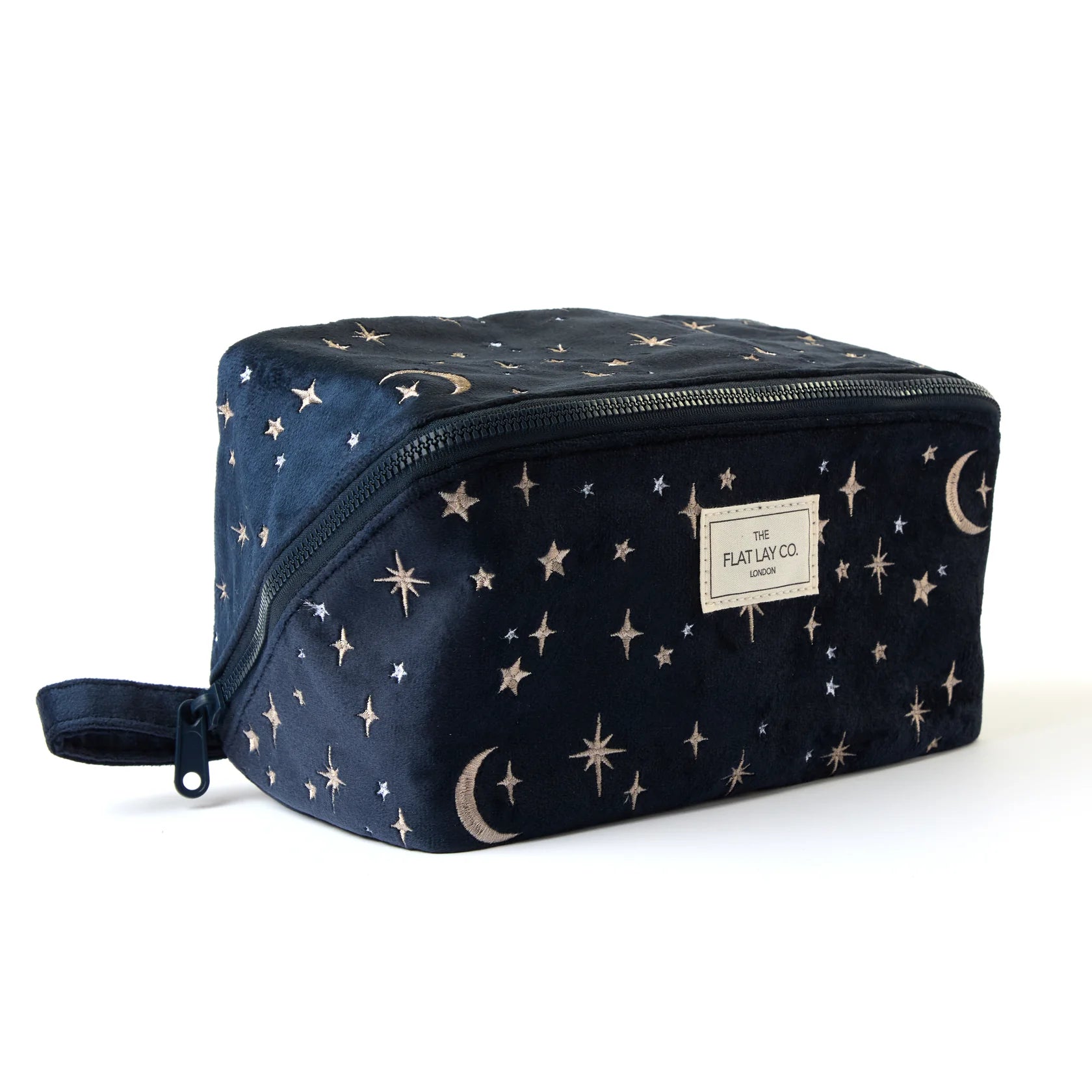 Drawstring Flat Lay Makeup Bag - Celestial Blue Embroidered Velvet