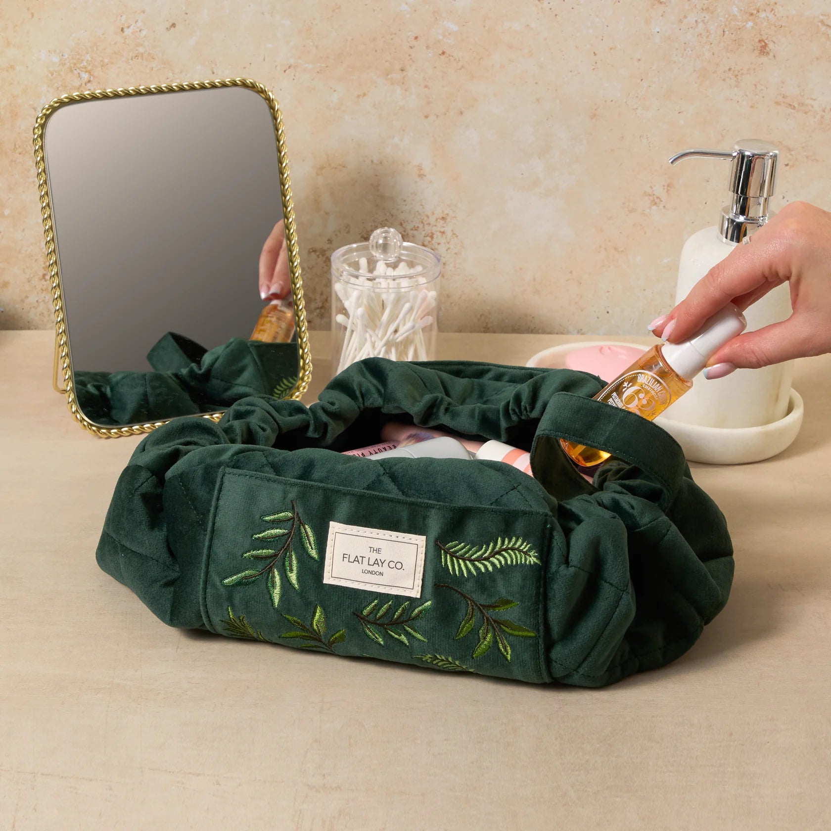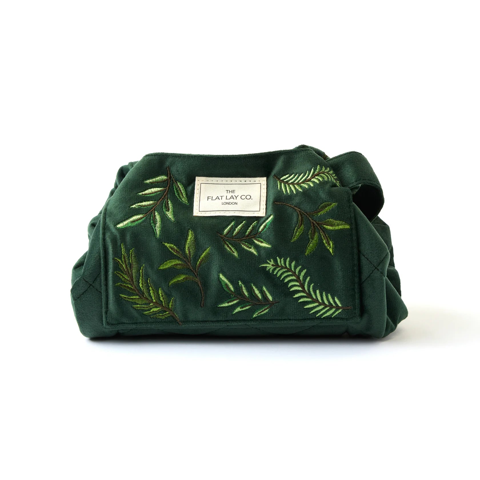 Drawstring Flat Lay Makeup Bag - Green Leaves